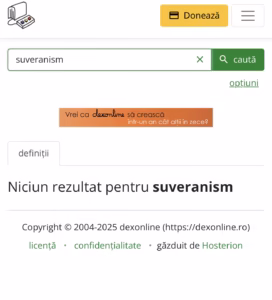 În ultimele ore, dexonline.ro a devenit o platformă populară pe Facebook, unde utilizatorii uimiți de absența termenului „suveranism” postează capturile cu „niciun rezultat”.