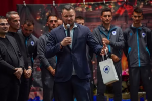 Copiii au primit cadouri din partea moșului care i-a avut ca spiriduși pe președintele AJF Argeș, Daniel Pirciu și Directorul Sportiv al clubului ACS UNIREA BASCOV, Bogdan Mogardau.
