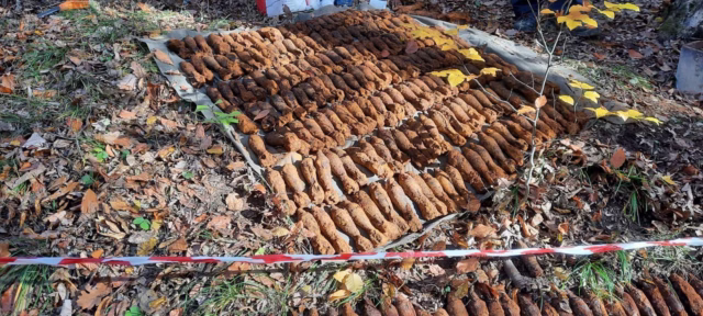 Astfel, pe parcursul a două zile (1 și 2 noiembrie), au extras aproximativ 600 bombe de aruncător de calibrul 50 mm, în jur de 70 bucăți cartușe de calibrul 6.50 mm, 2 proiectile explozive de calibrul 37 mm și un proiectil cumulativ de calibrul 100 mp, provenite din Primul Război Mondial, muniția fiind descoperită de către o persoană, cu ajutorul unui detector de metale.
