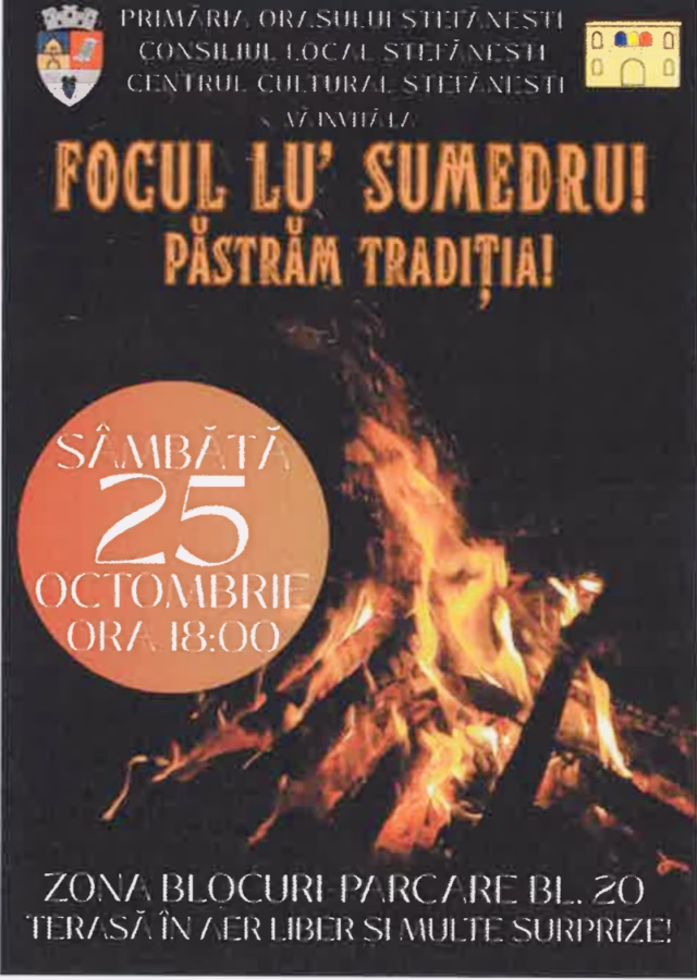 „Vă așteptăm alături de familie și prieteni să păstrăm împreună această tradiție frumoasă și să ne bucurăm de o seară caldă și plină de voie bună. Ne așteaptă un foc mare, atmosferă de sărbătoare, terasă în aer liber și multe surprize! Vino cu familia și prietenii și retrăiește magia unei ser ide toamnă ca pe vremuri!”, a transmis primarul Nicolae Velcea.