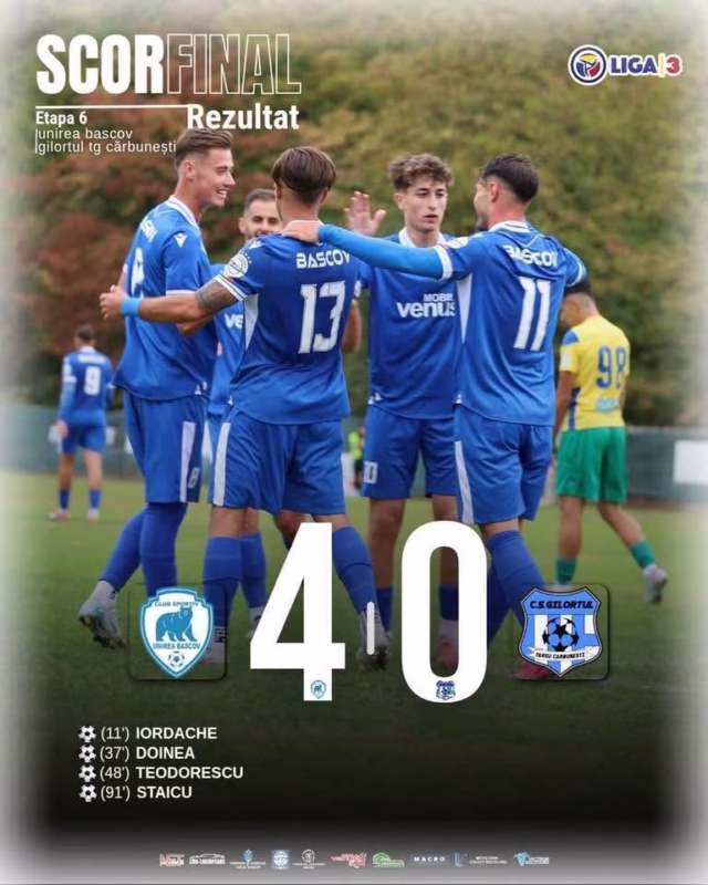 UNIREA BASCOV vs GILORTUL TG CĂRBUNEȘTI =4-0 !